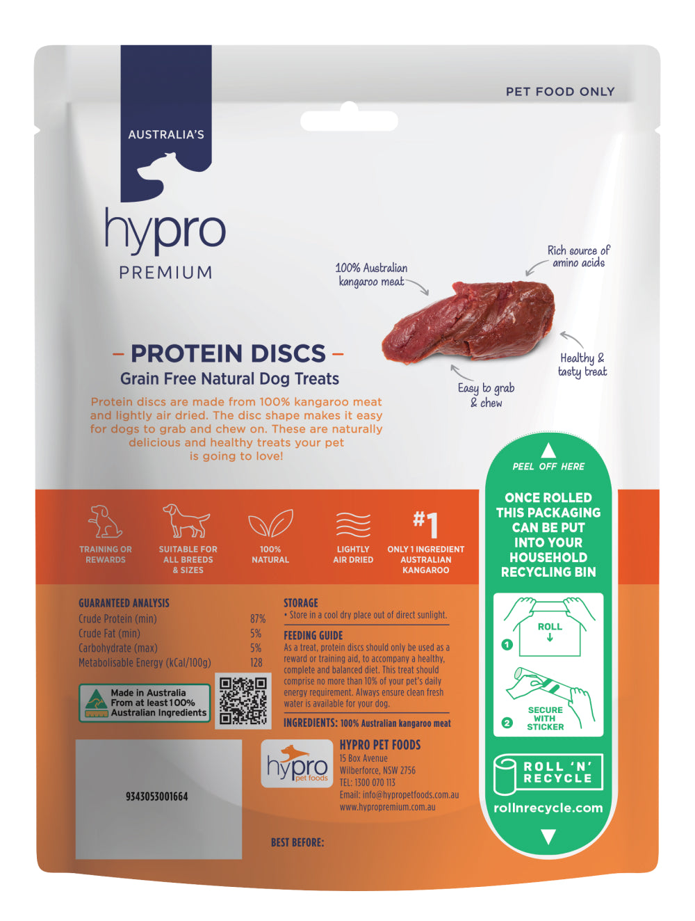 Kangaroo dog treats are not only tasty; they have a number of health benefits. Hypro Premium Protein Discs are made from 100% kangaroo meat and lightly air dried. The disc shape makes it easy for dogs to grab and chew on. These are naturally delicious and healthy treats your pet is...